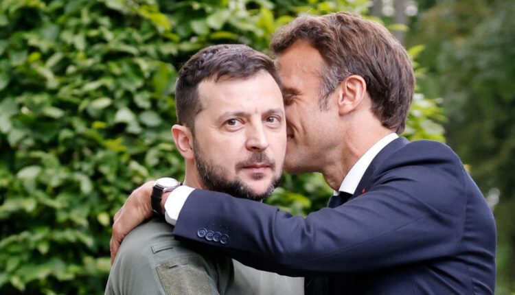ويظهر ماكرون في الصورة وهو يعانق زيلينسكي ويبتسم ويهمس في أذنه، خلال زيارة رباعية من رؤساء الدول الأوروبية للرئيس الأوكراني في كييف.