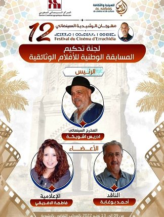 تعلن جمعية القبس للسينما والثقافة عن تنظيم فعاليات الدورة الثانية عشر لمهرجان الرشيدية السينمائي، من 07 إلى 13 نونبر 2022 تحت شعار:” السينما للرقي بالوعي الفني”، بالمركب الثقافي اولاد الحاج وفضاءات أخرى بالمدينة.