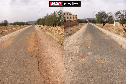 حفر كبيرة تنتشر على طول الطريق، تُهدد سلامة مستعمليها من سائقين وراجلين، في غياب تام لأي تدخل يُذكر لإصلاحها أو الحد من خطورتها.