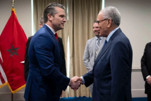 وفي هذا الإطار، عقد الوزير المنتدب لدى رئيس الحكومة المكلف بإدارة الدفاع الوطني، مرفوقًا بالفريق أول المفتش العام للقوات المسلحة الملكية وقائد المنطقة الجنوبية، لقاءً رفيع المستوى مع بيت هيغسيث، وزير الدفاع الأمريكي، وذلك بحضور كل من يوسف العمراني، سفير المملكة المغربية لدى الولايات المتحدة الأمريكية، وديوك بوكان الثالث، سفير الولايات المتحدة الأمريكية بالرباط، إلى جانب وفدين رفيعي المستوى من الجانبين.