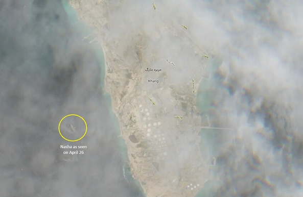 وأظهرت الصور الملتقطة بتاريخ 26 أبريل وجود الناقلة “ناشا” (Nasha) في محيط جزيرة خرج، التي تُعد أكبر محطة لتصدير النفط في إيران، حيث ظهرت السفينة في موقع غير معتاد بعد غياب طويل عن أنظمة التتبع البحري.